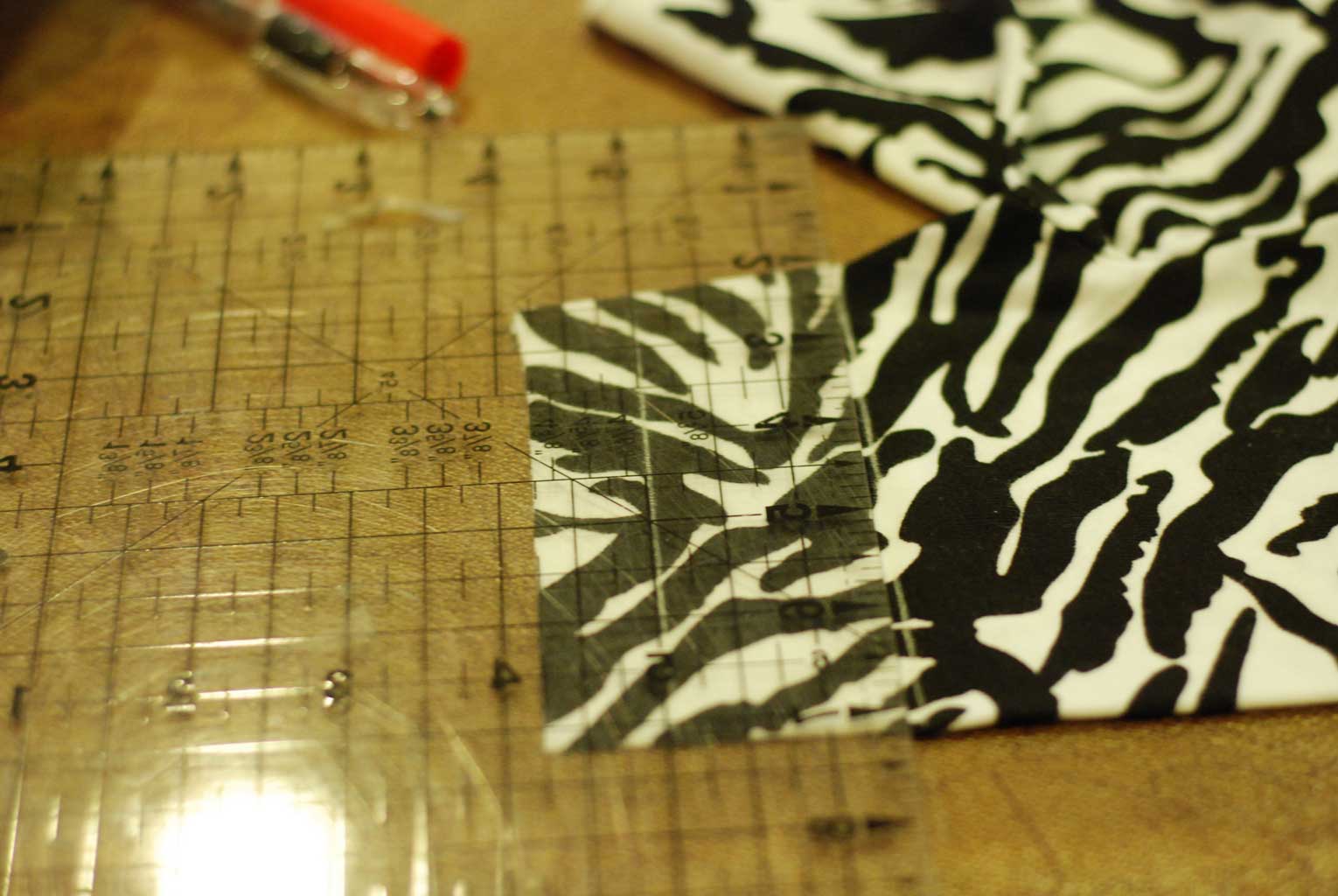 If you are using a coordinating knit you need to measure the edge of your leg when flat. You will take this measurement & X2… so if flat it is 4″ then your leg circumference is 8″. You will then cut out 8 strips that are that measurement X 1.5″ wide… so in this case mine would be 8″X1.5″