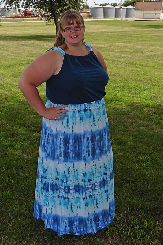 Have I mentioned lately how much I love the California Dress & Peplum pattern? Cause I still do! I got this beautiful tie-dye print brushed cotton spandex this week and it was begging to become a maxi dress … and when fabric “speaks,” it’s hard not to listen!